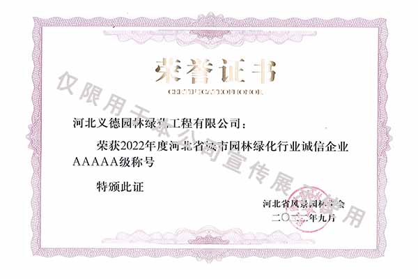 2022年度河北省城市園林綠化行業(yè)